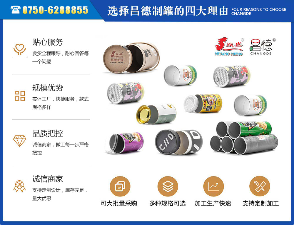 江門市昌德五金制罐有限公司位于江門與珠海臨近的古井鎮(zhèn),是專業(yè)生產(chǎn)紙罐,食品紙罐系列的包裝研制、開發(fā)、生產(chǎn)的廠家,從建廠至今,公司本著“重合同、守信用”的原則,以“質(zhì)量求生存,客戶至上”為經(jīng)營宗旨,贏得了很好的信譽(yù),公司擁有國內(nèi)一流的技術(shù)設(shè)備和多年的生產(chǎn)經(jīng)驗(yàn)。年產(chǎn)休閑食品紙筒500萬左右,紙筒2000萬支左右,易拉罐,食品罐等1000萬左右,產(chǎn)品銷往各地。我廠是以高科技為先導(dǎo),以技術(shù)創(chuàng)新整合為手段,成為迅速崛起的專業(yè)性包裝企業(yè),憑借艱苦的創(chuàng)業(yè)精神和集體智慧,采用規(guī)范的現(xiàn)代企業(yè)運(yùn)行機(jī)制,形成具有鮮明特色的企業(yè)文化模式和管理...